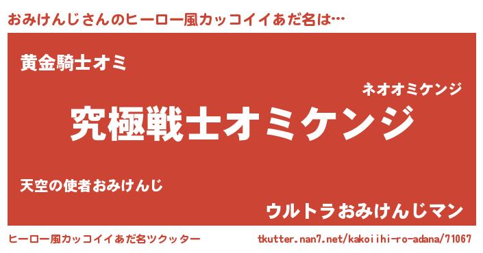 | 女子向けラノベタイトル風あだ名 | 『おみけんじの玉の輿計画!』 |