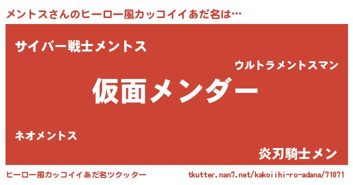 | 意味不明あだ名 | 『住所不定無職メントス(8歳)』 |