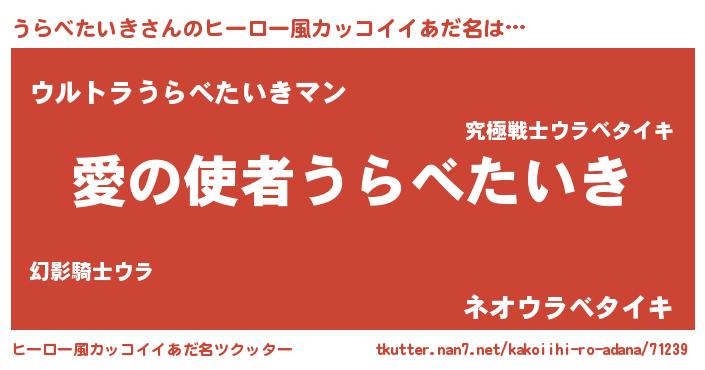 | 男性向けラノベタイトル風あだ名 | 『転生したらうらべたいきだった件』 |