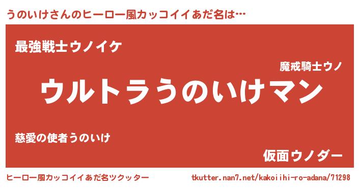 | 男性向けラノベタイトル風あだ名 | 『うのいけ~年齢イコール彼女いない歴の魔法使い~』 |