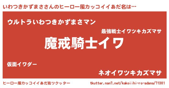 | ポケモン風あだ名 | 『ヒイワツキカズマサ』『イワツダネ』 |