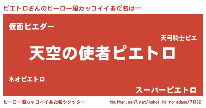 | 男性向けラノベタイトル風あだ名 | 『ノーゲーム・ノーピエトロ』 |