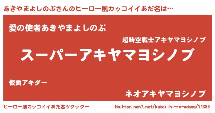 | ヘコむあだ名 | 『あきにー』『あきやまよしのぶ(苦笑)』 |