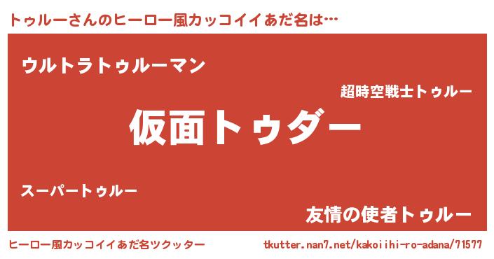 | 男性向けラノベタイトル風あだ名 | 『この素晴らしい世界にトゥルーを!』 |