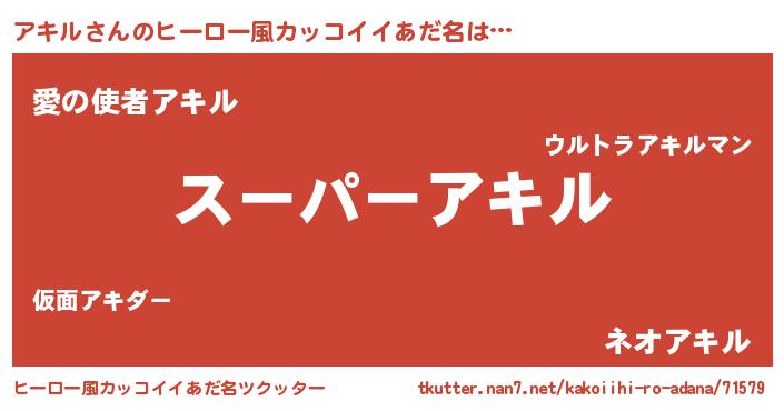 | 男性向けラノベタイトル風あだ名 | 『アキルの憂鬱』『アキルスレイヤー』 |