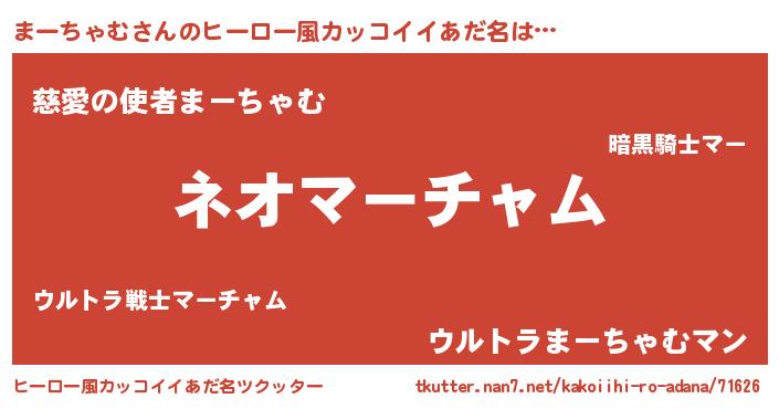| 伝説のあだ名 | 『古文書に記された暗殺者まーちゃむ』 |