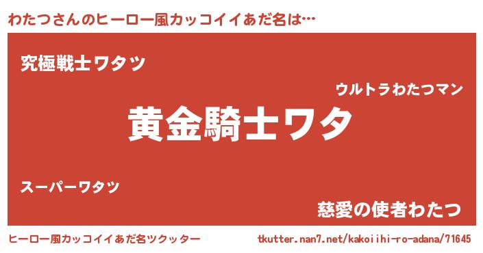 | ポケモン風あだ名 | 『ワタキング』『ヒワタツ』 |