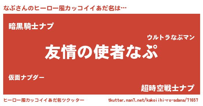 | 男性向けラノベタイトル風あだ名 | 『おまえをオタクにしてやるから、俺をなぷにしてくれ! 』 |