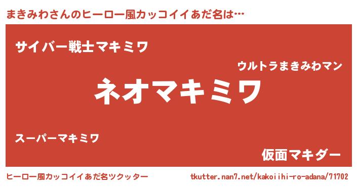 | 意味不明あだ名 | 『永久保存まきみわ』『自称まきみわ』 |