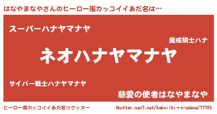 | ヘコむあだ名 | 『はなやまなや(苦笑)』『はなにゅー』 |