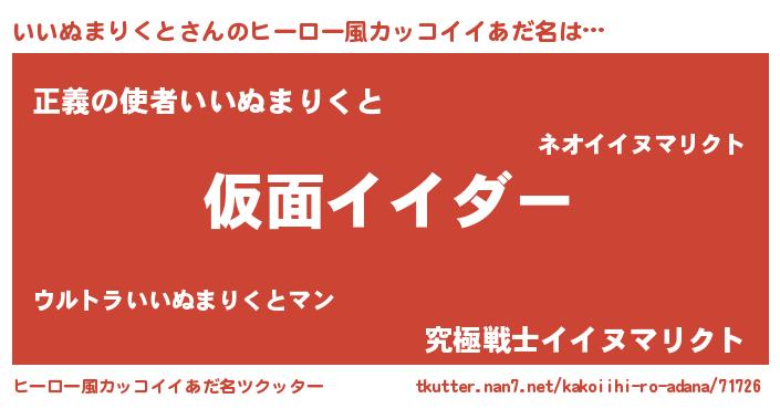 | 胡散臭い通販商品みたいなあだ名 | 『世界中を虜にした100年もののヴィンテージワイン…その名も「いいぬまりくと」』 |