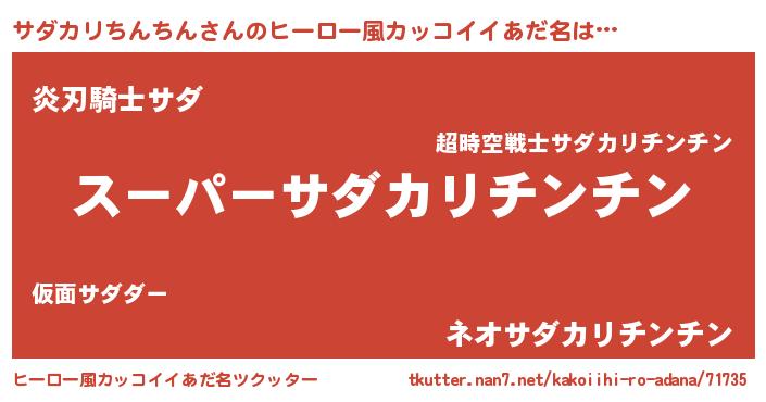 | 男性向けラノベタイトル風あだ名 | 『サダカリチンチンアートオンライン』 |