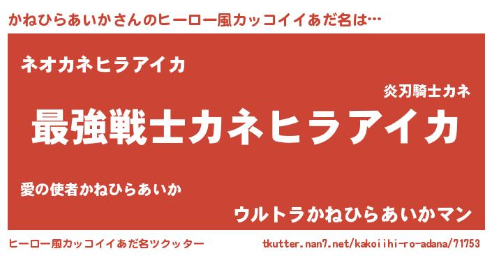 | 男性向けラノベタイトル風あだ名 | 『かねひらあいかに滅ぼされるだけの簡単なお仕事です』 |