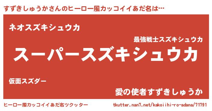 | ヘコむあだ名 | 『すずにー』『すずきしゅうか(爆)』 |