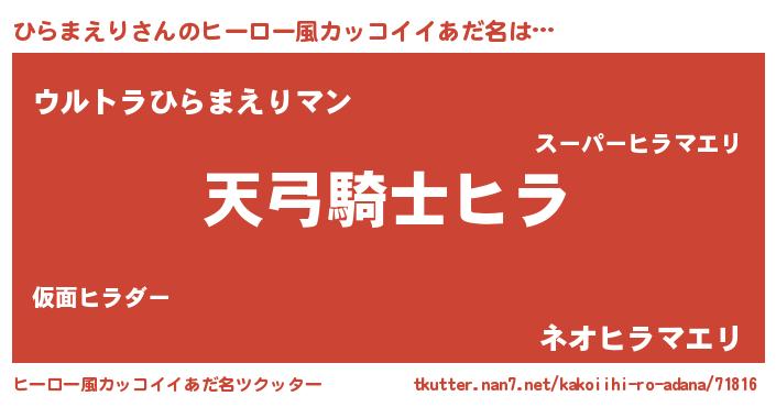 | 男性向けラノベタイトル風あだ名 | 『ひらまえりに滅ぼされるだけの簡単なお仕事です』 |