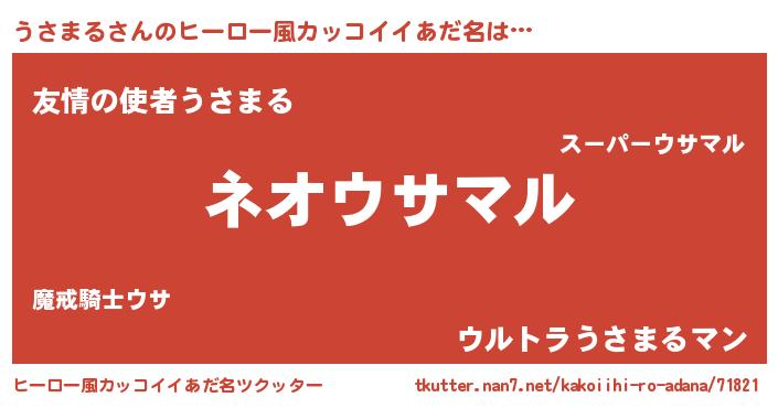 | 胡散臭い通販商品みたいなあだ名 | 『来世でも幸せになれる水素水…その名も「うさまる」』 |