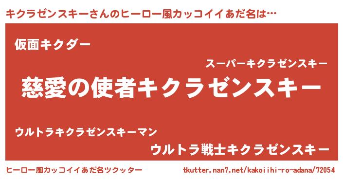 | 男性向けラノベタイトル風あだ名 | 『ノーゲーム・ノーキクラゼンスキー』 |