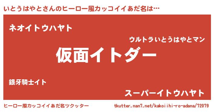| 男性向けラノベタイトル風あだ名 | 『魔弾の王といとうはやと』 |