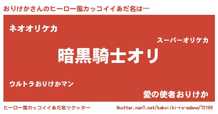 | 胡散臭い通販商品みたいなあだ名 | 『信頼と実績のサプリメント…その名も「おりけか」』 |