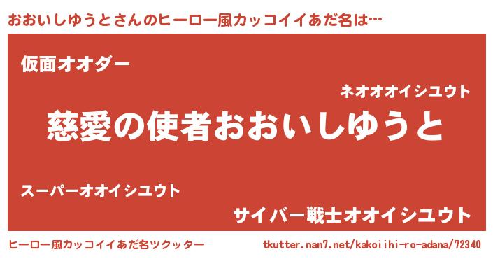 | 男性向けラノベタイトル風あだ名 | 『ノーゲーム・ノーオオイシユウト』 |