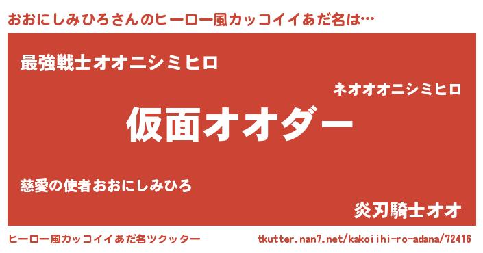 | 男性向けラノベタイトル風あだ名 | 『この素晴らしい世界におおにしみひろを!』 |