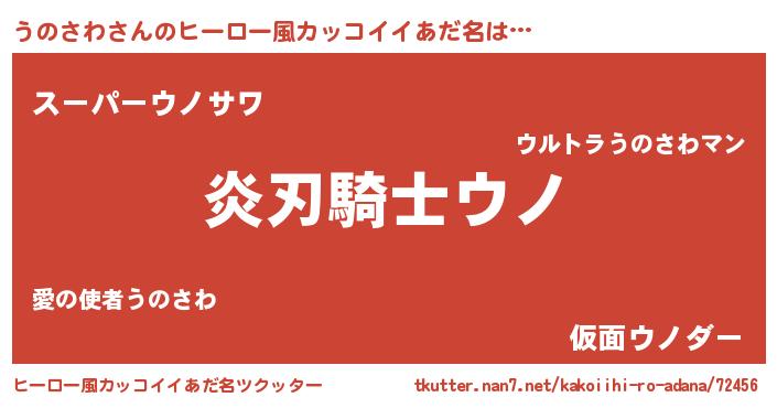 | 男性向けラノベタイトル風あだ名 | 『うのさわ~年齢イコール彼女いない歴の魔法使い~』 |