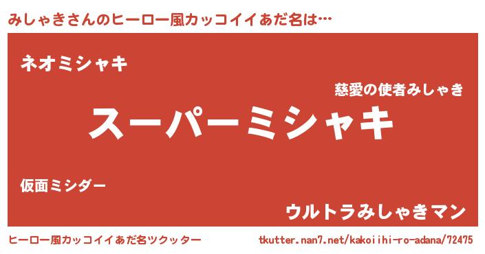 | 男性向けラノベタイトル風あだ名 | 『みしゃきの憂鬱』『魔弾の王とみしゃき』 |