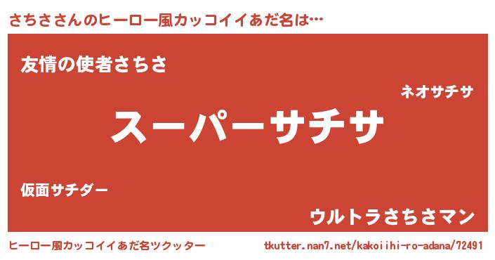 | 男性向けラノベタイトル風あだ名 | 『さちさ~年齢イコール彼女いない歴の魔法使い~』 |