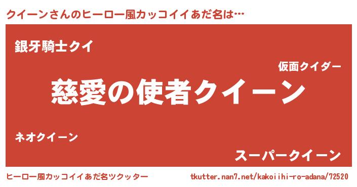 | 女子向けラノベタイトル風あだ名 | 『クイーンの玉の輿計画!』 |