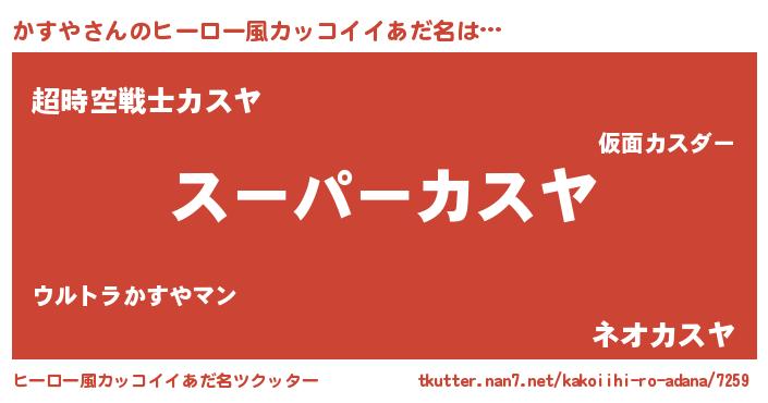 | 男性向けラノベタイトル風あだ名 | 『かすやの憂鬱』『緋弾のカスヤ』 |