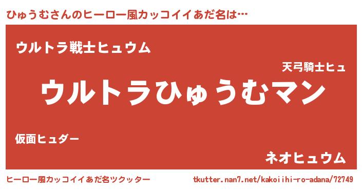 | 女子向けラノベタイトル風あだ名 | 『ひゅうむの雑貨屋さん』『闇のひゅうむ』 |