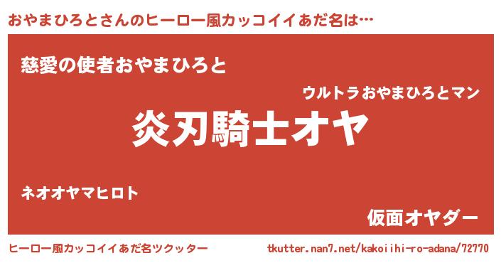 | 男性向けラノベタイトル風あだ名 | 『おやまひろとの嫁は女の子じゃないと思った?』 |