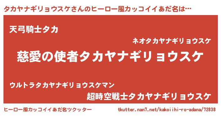 | 女子向けラノベタイトル風あだ名 | 『タカヤナギリョウスケの玉の輿計画!』 |