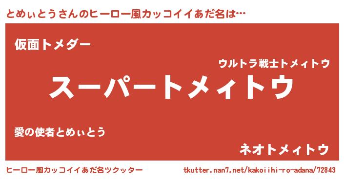 | 男性向けラノベタイトル風あだ名 | 『とめぃとうに滅ぼされるだけの簡単なお仕事です』 |