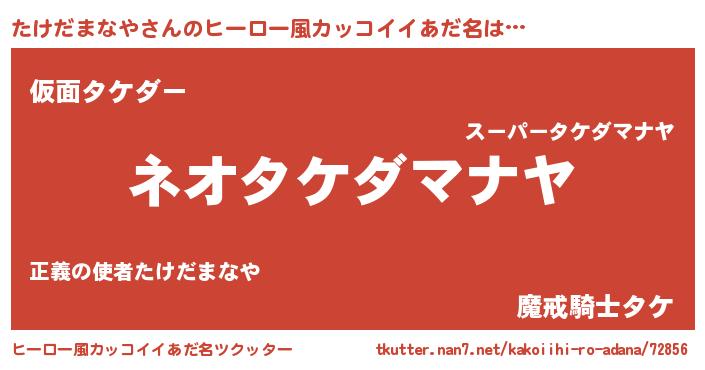 | ヘコむあだ名 | 『たけだまなや(小並感)』『たけお』 |