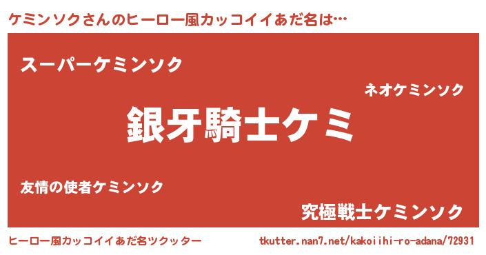 | 意味不明あだ名 | 『とにかく怪しいケミンソク』 |