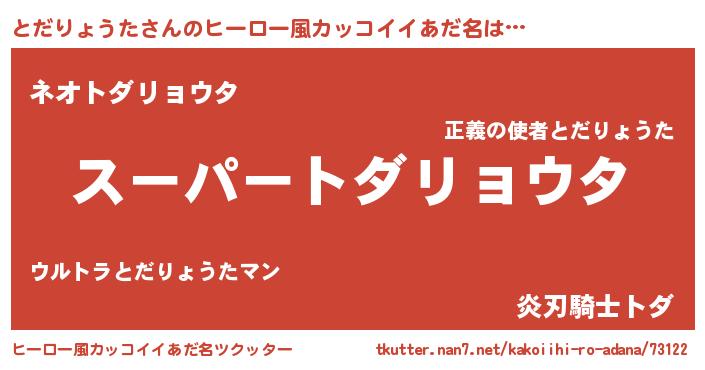 | 男性向けラノベタイトル風あだ名 | 『トダリョウタアートオンライン』 |
