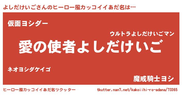 | 男性向けラノベタイトル風あだ名 | 『ノーゲーム・ノーヨシダケイゴ』 |