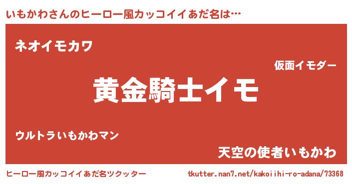 | 胡散臭い通販商品みたいなあだ名 | 『信頼と実績のサプリメント…その名も「いもかわ」』 |