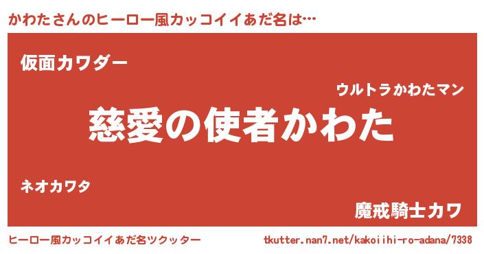 | 女子向けラノベタイトル風あだ名 | 『死神かわたの再婚』『かわた様がみてる』 |