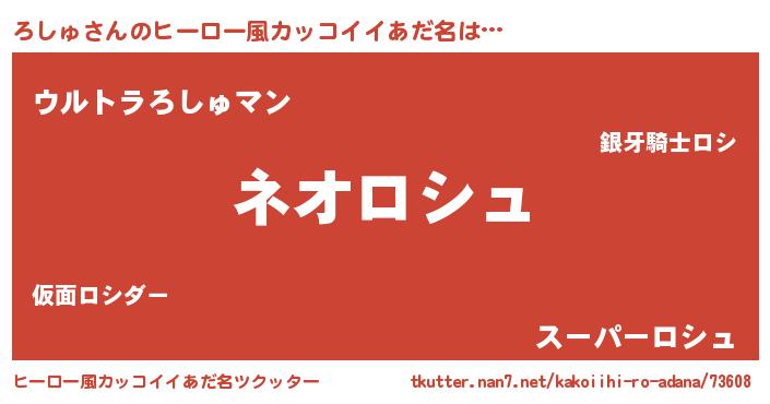| 男性向けラノベタイトル風あだ名 | 『ろしゅに滅ぼされるだけの簡単なお仕事です』 |