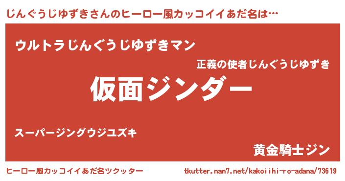 | 男性向けラノベタイトル風あだ名 | 『この素晴らしい世界にじんぐうじゆずきを!』 |