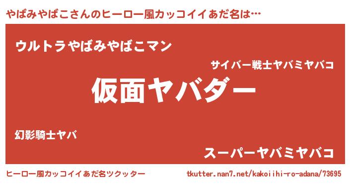 | 意味不明あだ名 | 『住所不定無職やばみやばこ(4歳)』 |
