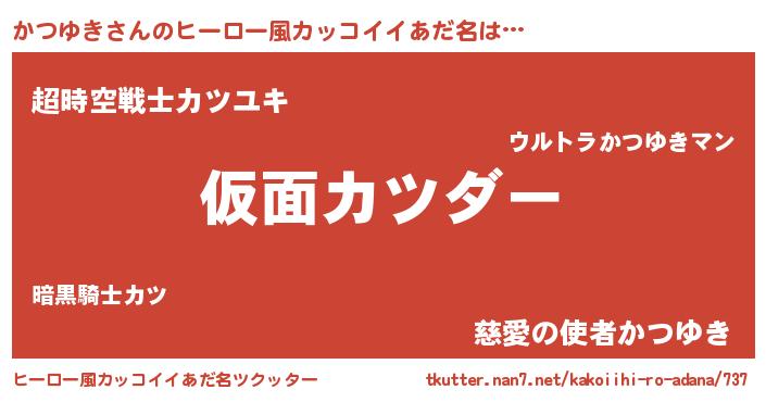 | 男性向けラノベタイトル風あだ名 | 『魔弾の王とかつゆき』 |
