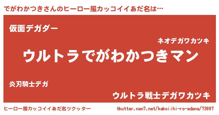 | 男性向けラノベタイトル風あだ名 | 『転生したらでがわかつきだった件』 |