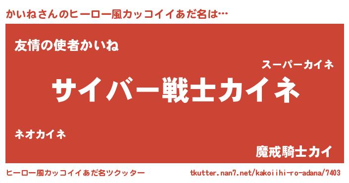 | 男性向けラノベタイトル風あだ名 | 『Re:かいねから始める異世界生活』 |
