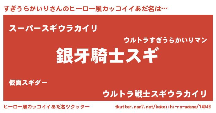 | 男性向けラノベタイトル風あだ名 | 『すぎうらかいりの嫁は女の子じゃないと思った?』 |