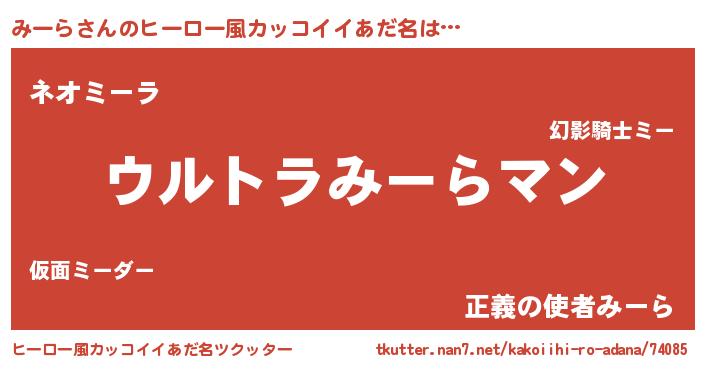| 男性向けラノベタイトル風あだ名 | 『転生したらみーらだった件』 |
