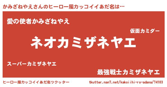 | 胡散臭い通販商品みたいなあだ名 | 『来世でも幸せになれる健康食品…その名も「かみざねやえ」』 |