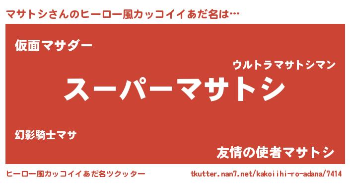 | 男性向けラノベタイトル風あだ名 | 『マサトシの憂鬱』『緋弾のマサトシ』 |